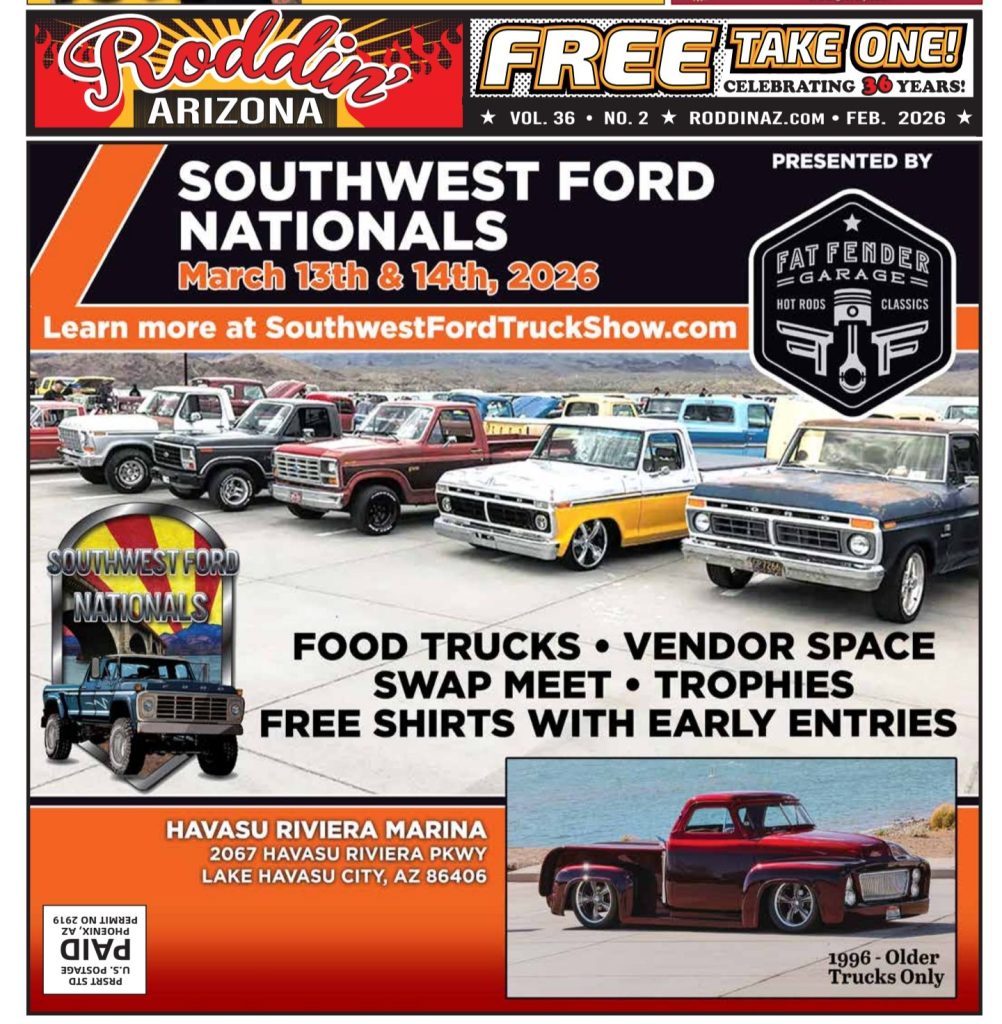 Southwest Ford Truck Nationals will be held Saturday and Sunday, March 13-14, 2026 at Havasu Riviera Marina. 8 a.m. – 4 p.m.