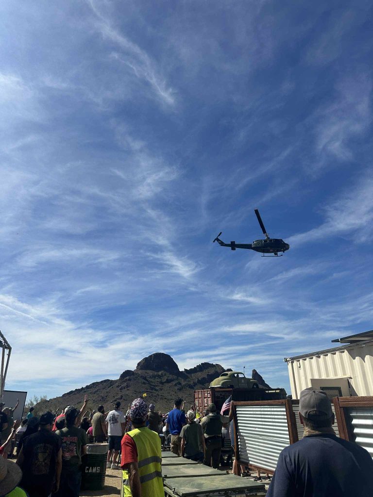“We’re going to be doing a 50/50 out there because we have 58 homeless vets out in the middle of the desert,” Hoover said before the trip, referring to the raffle custom. “We’re going to try to raise some money for them since they can’t get here to have lunch.”