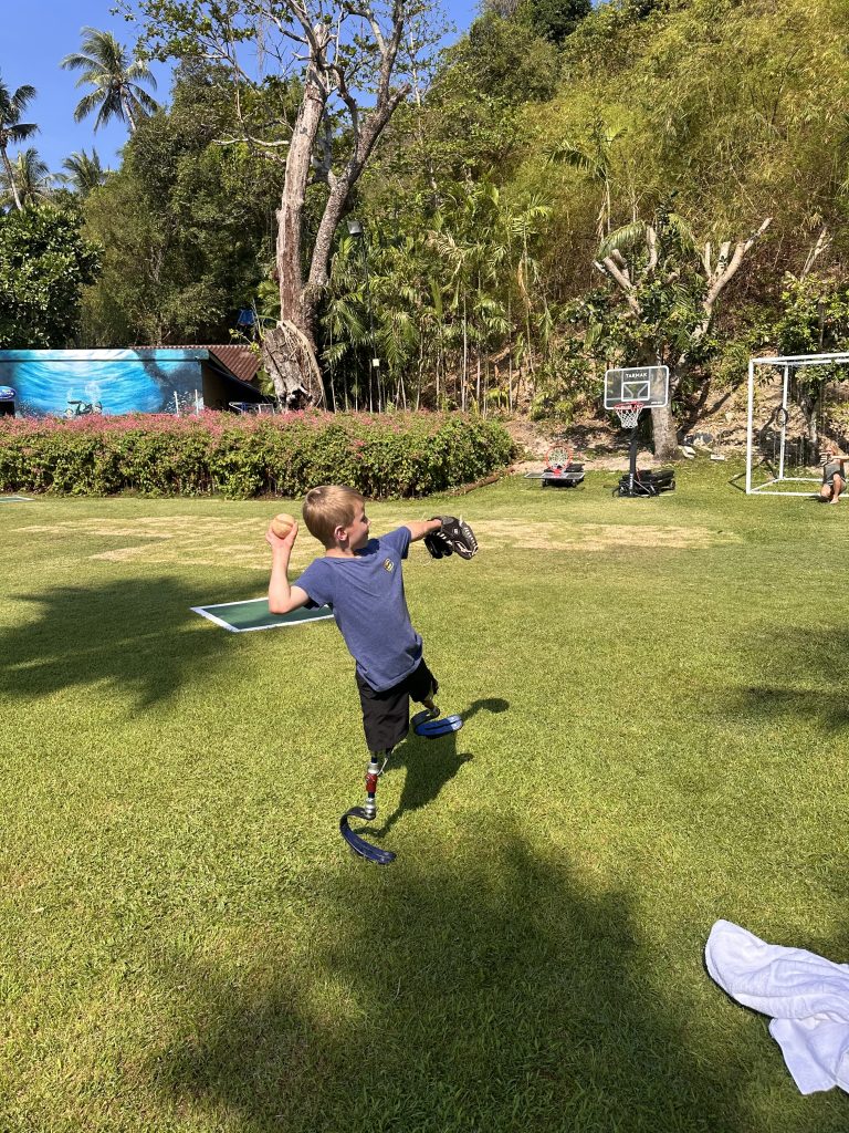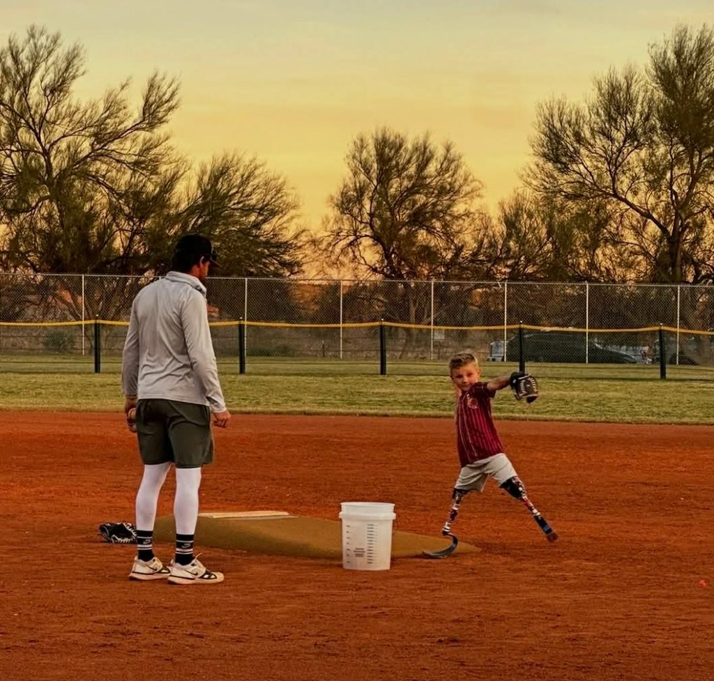 “Beauden’s dad has also been working with him as well,” Baumkirchner shared. “Pitching as a double amputee is really challenging. Not only is balancing on blades a challenge but Beauden’s hip movement is entirely different than ours with legs, plus he doesn’t have knees to be able to twist.”