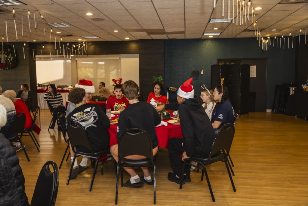 This is an annual event for the Kiwanis Club. After the students sang, Kiwanians serve the kids chicken nuggets and mac and cheese for lunch.
