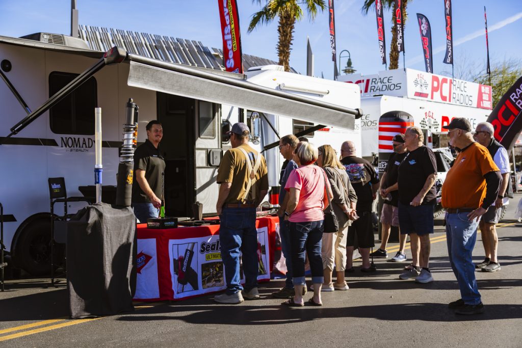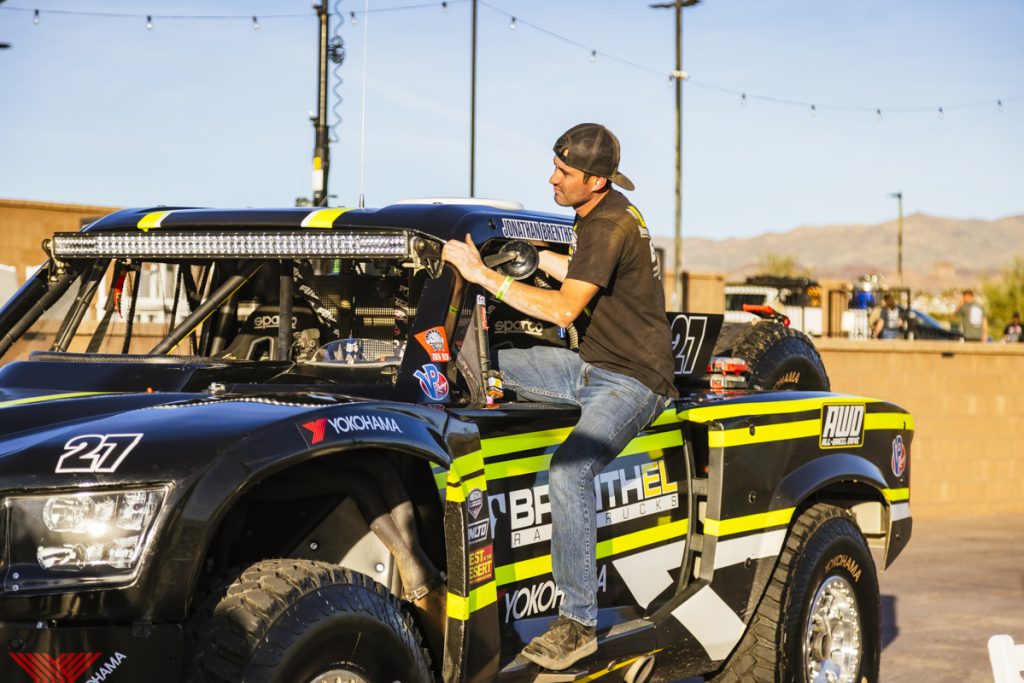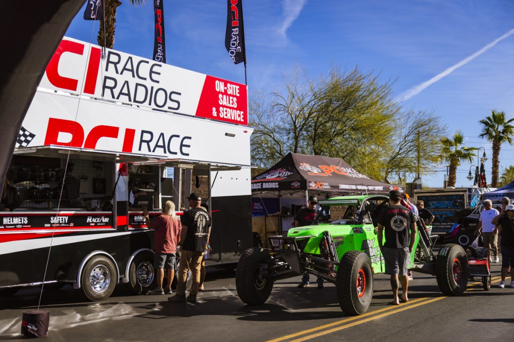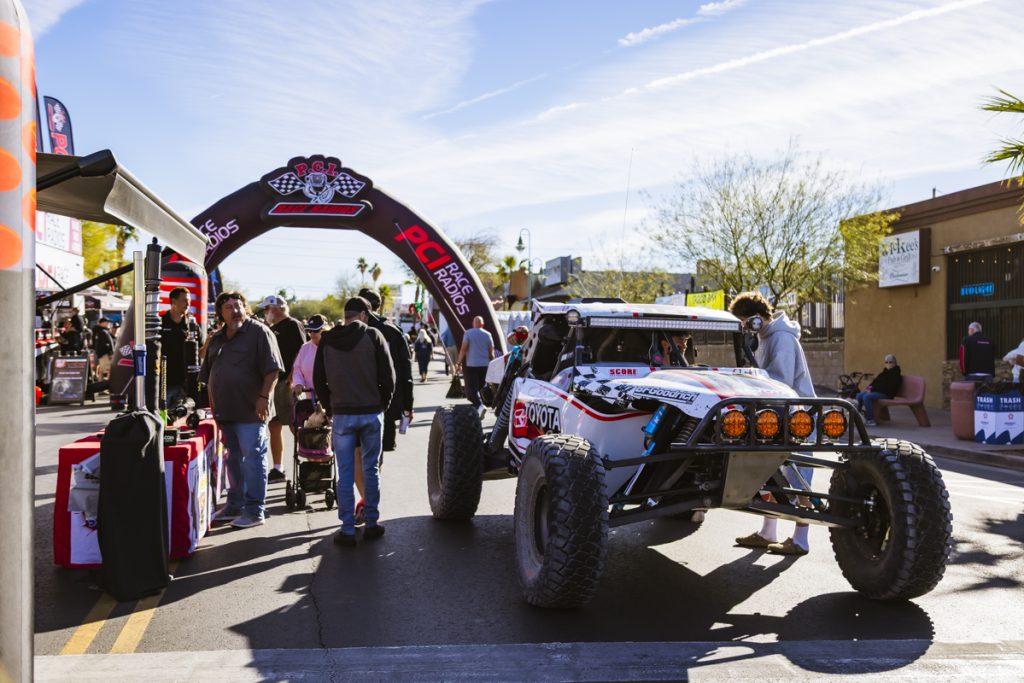 Off-road racers and event-goers gathered on McCulloch Boulevard Thursday for tech and contingency at the Parker 400.