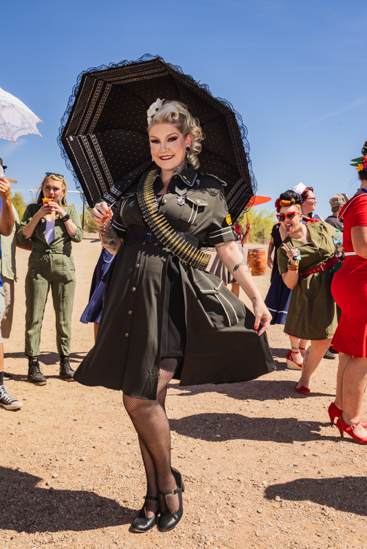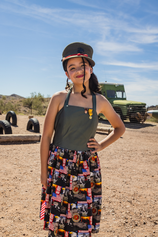 Wednesday Violet poses for a photo in her homemade dress at the Pinup Contest