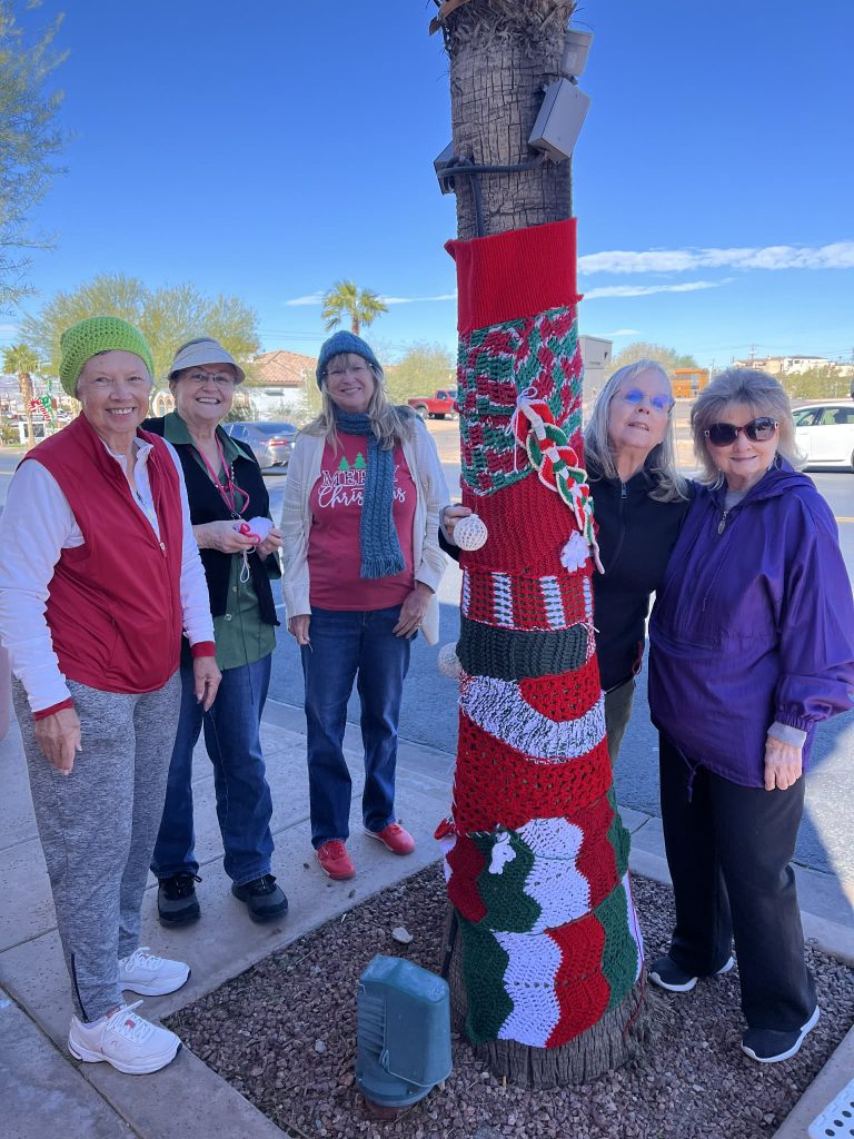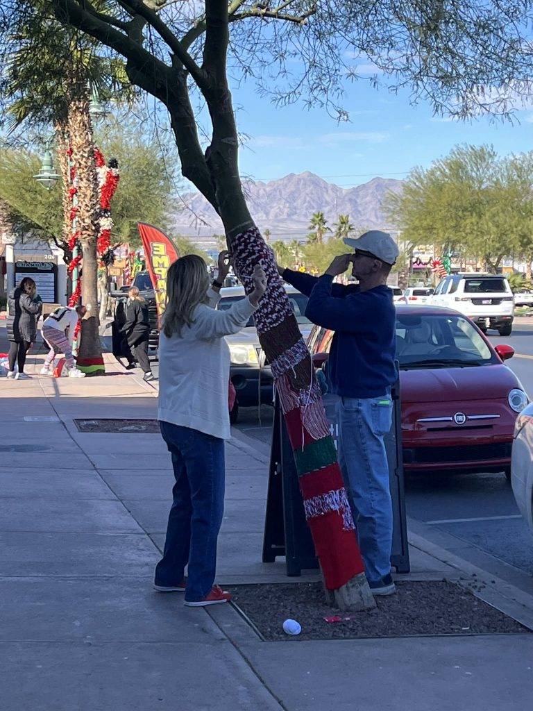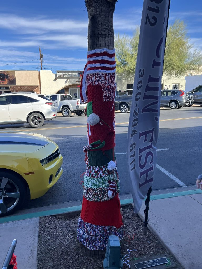 The Knotty Knitters decorated the trees on Main Street once again this year.